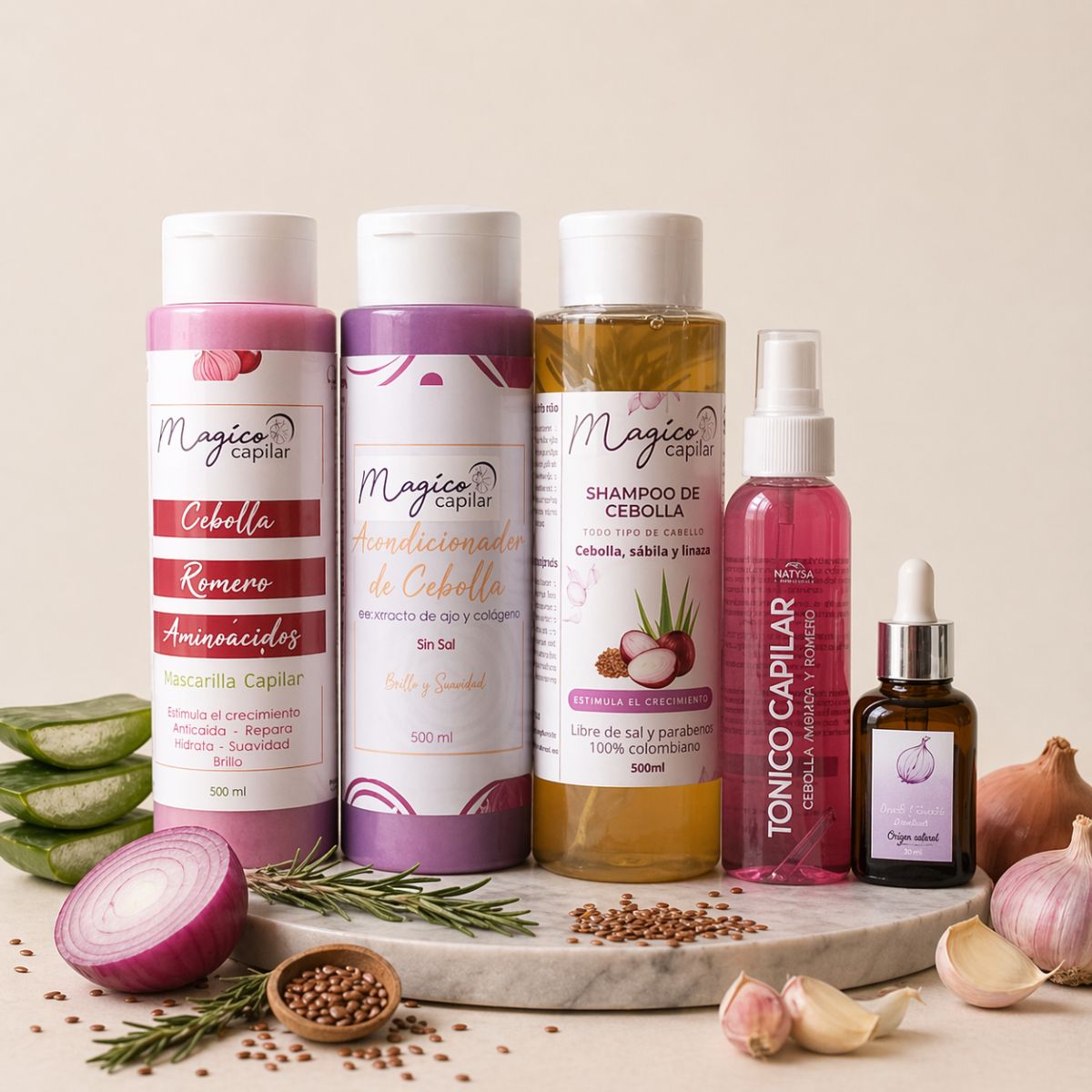 Contenido: Shampoo y acondicionador de cebolla 500ml , Tónico de cebolla 120ml aceite de cebolla 40ml